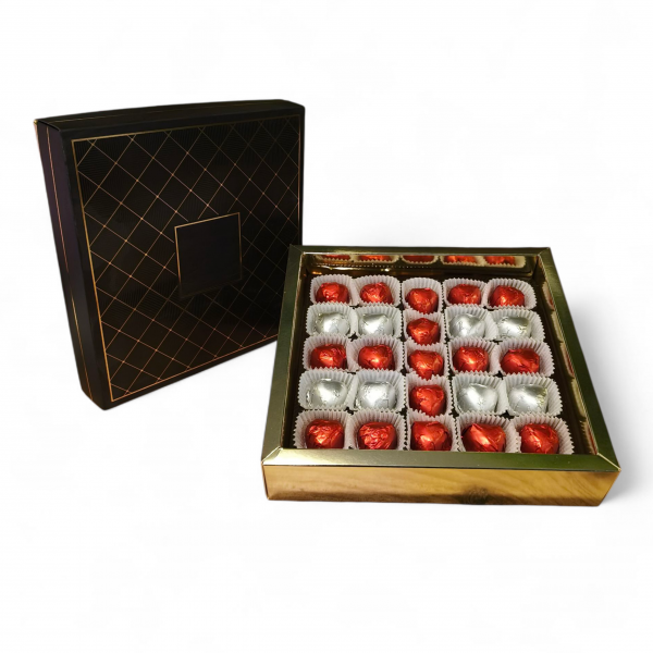 Kutu içerisinde 25 adet yaldiz sargılı kalp çikolata...