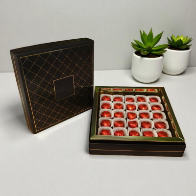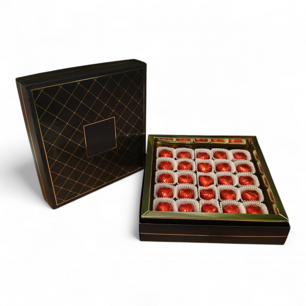 Hediyelik kutıda 25 adet kırmızı yaldız sargılı kalp çikolata...