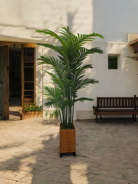 Yapay areka palmiyesi özel tasarım ahşap saksı içerisinde 220 cm boyunda